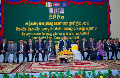 សៀមរាប ៖ ឯកឧត្តម នាយឧត្តមសេនីយ៍ ទៀ សីហា ឧបនាយករដ្ឋមន្រ្តី រដ្ឋមន្រ្តីក្រសួងការពារជាតិ និងជាប្រធានក្រុម ការងាររាជរដ្ឋាភិបាលចុះមូលដ្ឋានខេត្ត សៀមរាប អញ្ជើញជាអធិបតីពិធីបិទសន្និបាតបូកសរុបលទ្ធផលការងារប្រចាំឆ្នាំ ២០២៤ និងលើកទិសដៅការងារឆ្នាំ ២០២៥ របស់រដ្ឋបាលខេត្តសៀមរាប នាព្រឹកថ្ងៃទី២១ ខែមករា ឆ្នាំ២០២៥ នៅខេត្តសៀមរាប។